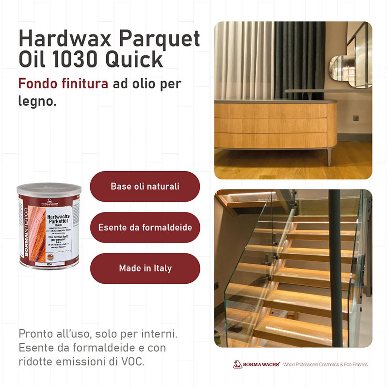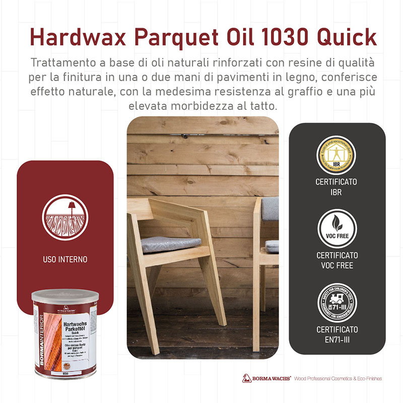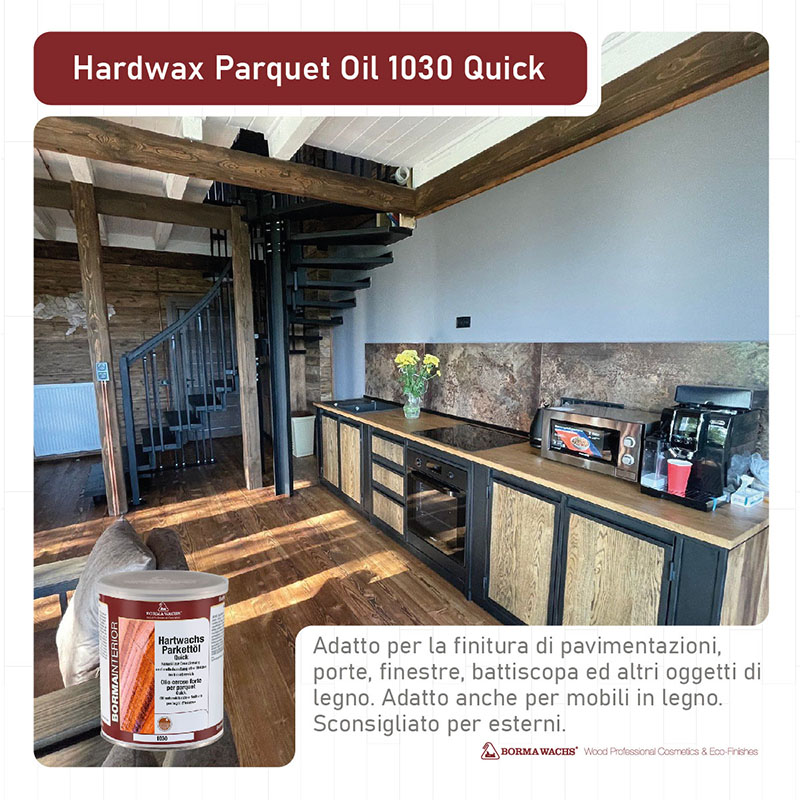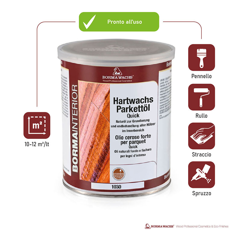 Miscela di preziosi oli naturali rinforzati con resine di alta qualità per la finitura delle superfici in legno da interno non trattate.