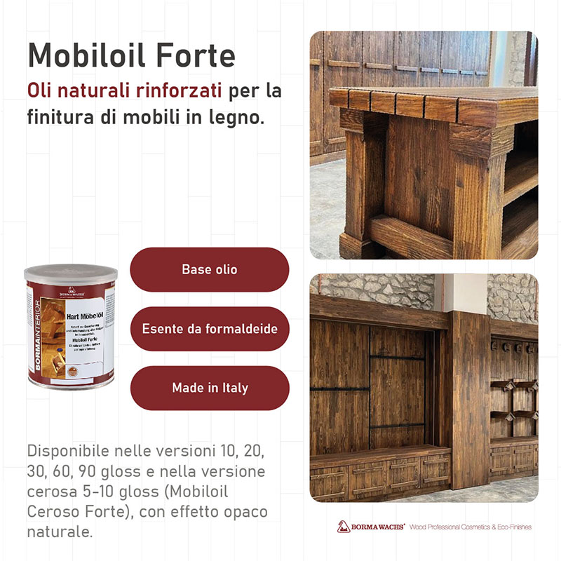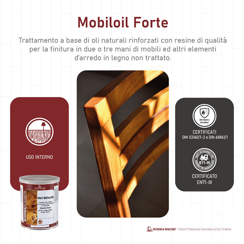E' una miscela di pregiati oli naturali rinforzati con resine, per la finitura dei mobili in legno.